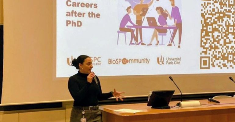 Début octobre, en collaboration avec les représentant·es des doctorant·es, nous avons eu le plaisir de participer à une table ronde professionnelle sur le thème “Carrières après le doctorat”.Cet événement est le fruit d’une belle collaboration entre l’association BioSPCommunity et l’école doctorale BioSPC.